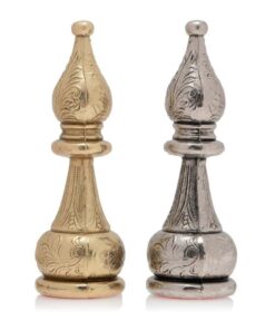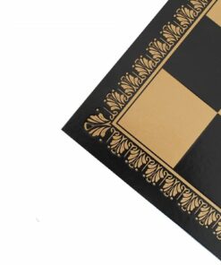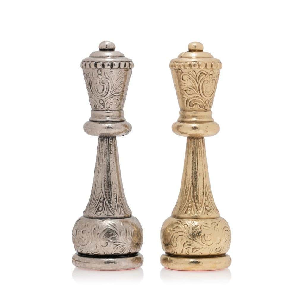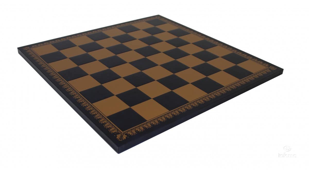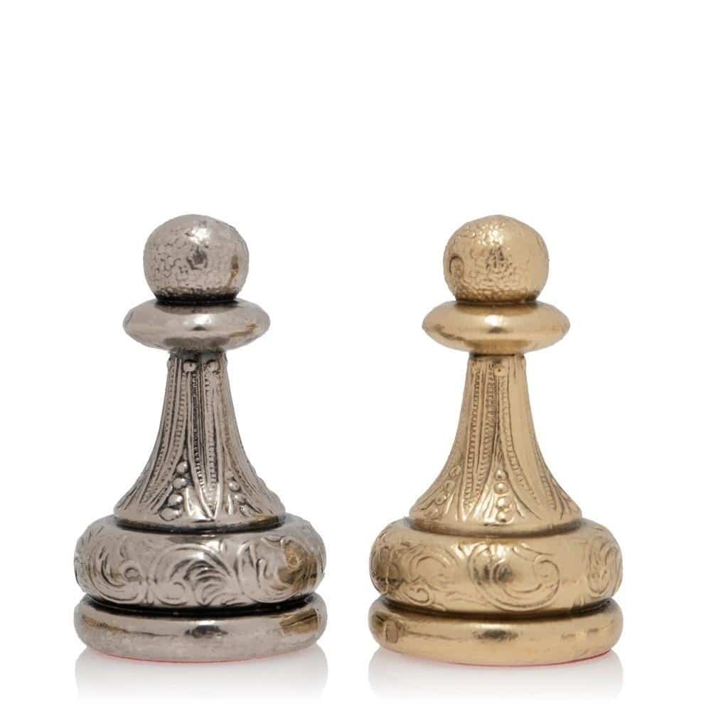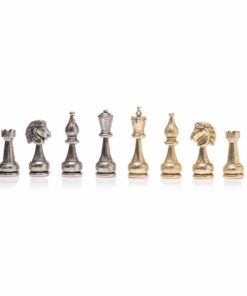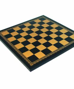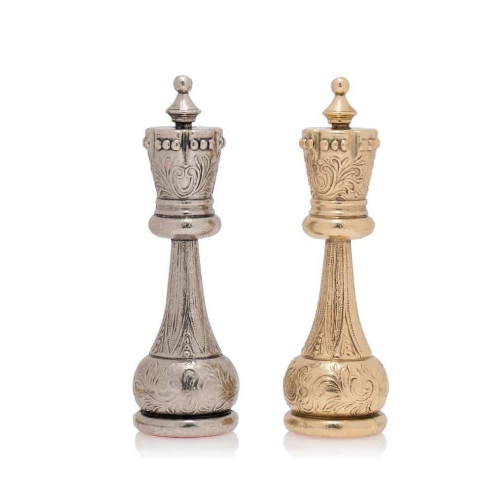 Grand Jeu d’Echecs en Métal Sculpté avec Echiquier en Similicuir Noir et Doré