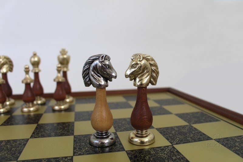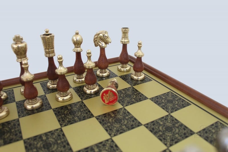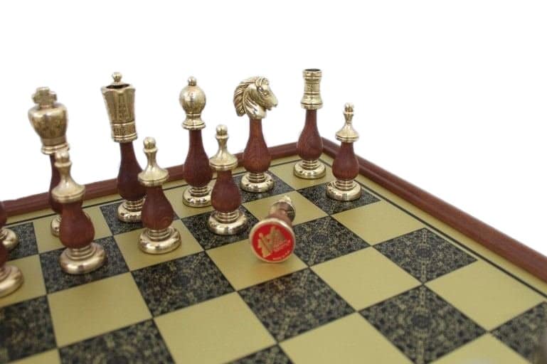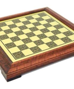 Jeu d’Echecs Arabesque – Échiquier en Bois et Métal avec Cadre en Laiton