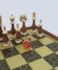 Ce jeu d’échecs arabesque est un jeu de haute qualité qui combine le style et la sophistication. L’échiquier à effet laiton est magnifiquement serti dans un cadre en bois sculpté et présente des pièces en métal et bois. Les pièces sont faites à la main et brillent magnifiquement sous la lumière. Les détails des pièces sont exceptionnels et font de ce jeu un must-have pour tout amateur d’échecs.Le jeu est livré dans une boîte soigneusement conçue pour offrir une protection maximale et une présentation attrayante. Les dimensions du jeu sont suffisamment grandes pour offrir une surface de jeu confortable, et le jeu est suffisamment petit pour être facilement transporté lors de voyages.Ce jeu d’échecs arabesque est un excellent choix pour les passionnés d’échecs, passionnés