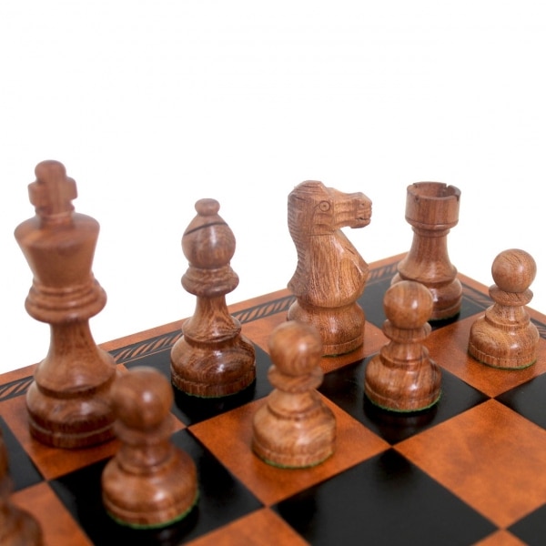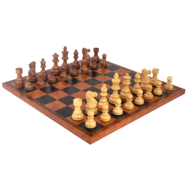 Jeu d’Échecs Classique en Bois de Rose Doré – Échiquier en Similicuir & Pièces Magnifiques!