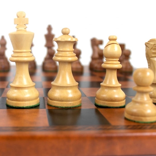 Ensemble Echiquier Bois d’Erable et Noyer et Jeu d’Echecs Bois Rose Doré et Buis – Sicilien