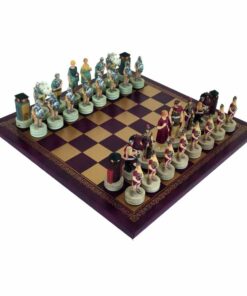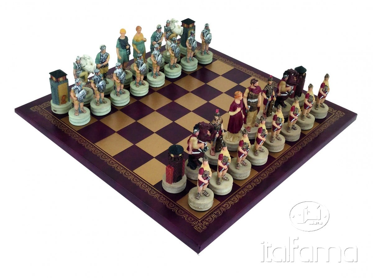 Jeu d’Echecs Conquete de la Grece par Rome en Résine & Échiquier en Similicuir Bordeaux et Doré – Échiquier Résine & Similicuir de Luxe