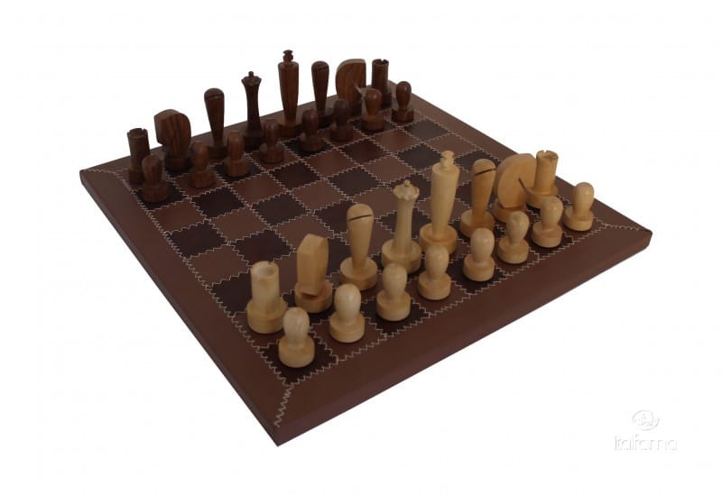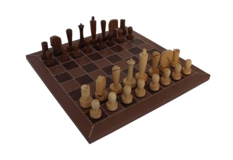 Jeu d’Echecs Contemporain en Bois d’Acacia & Échiquier en Cuir Véritable – Un Jeu de Stratégie Unique & Durable