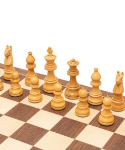 Ensemble Echiquier Bois d’Erable et Noyer et Jeu d’Echecs Bois Rose Doré et Buis – Sicilien