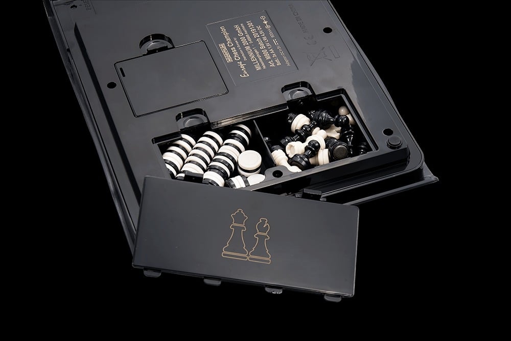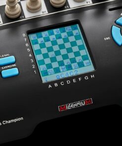 Le Jeu d’Echecs Electronique Débutant Europe Chess Champion est le produit idéal pour les passionnés de ce jeu classique et stratégique. Il dispose de 1500 ELO avec des pièces fournies et magnétiques ainsi qu’un compartiment de rangement pour les pièces. L’échiquier a une dimension de 15 x 15 cm, une hauteur du roi de 3 cm et est équipé d’une technologie de plateau à capteur de pression, technologie Millennium HighSensitiy. Il est doté d’un écran avec éclairage et d’une puce 8 bits, avec un menu texte en français. Fabriqué en Allemagne, le jeu est livré avec une carte de garantie et une protection voir photo. En option et non inclus, le bloc d’alimentation est disponible avec une prise interchangeable Europe, UK et US, les dimensions sont 11,4 x 5,6 x 1,1 cm, le poids est de