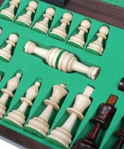 L’ensemble Olympic est parfait pour les débutants et les joueurs avancés. Les pièces d’échecs sont de taille classique, ce qui leur donne une prise en main agréable. Les pièces sont en bois de charme et de hêtre, ce qui leur donne une apparence luxueuse et une bonne durabilité. L’échiquier pliable en bois de hêtre est équipé d’un plateau d’insertion pour le rangement des pièces d’échecs à l’intérieur. Il est de couleur marron, ce qui le rend parfait pour une utilisation à la maison ou en déplacement. Cet ensemble est livré avec des pièces équilibrées et bien façonnées pour offrir une expérience de jeu optimale. Offrez ce jeu d’échecs en bois de charme et de hêtre pour des heures de divertissement et de plaisir. Ce Combo Olympic est un excellent choix pour les joueurs d’échecs à tous les niveaux. Commandez maintenant et commencez à jouer!
