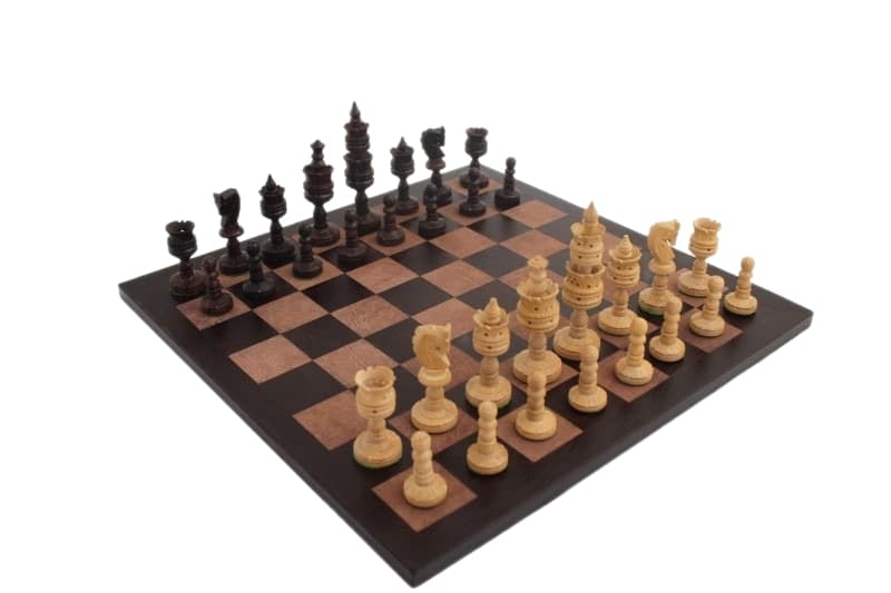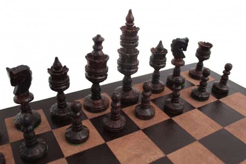 Ce jeu d’échecs sculpté en bois de palissandre et échiquier en cuir véritable offre une expérience d’échecs authentique et haut de gamme. Le jeu est fabriqué à la main par des maîtres artisans, ce qui en fait un produit de qualité qui durera des années. Les pièces sont faites d’un bois de palissandre solide, ce qui leur donne une sensation et un look luxueux. De plus, les pièces sont polies et lisses pour une manipulation facile.L’échiquier en cuir véritable est également très durable. Il est fait de cuir de qualité supérieure qui résiste aux taches et à l’usure. Il est également doté d’une doublure en velours pour une meilleure prise en main et une présentation impeccable.Les pièces et l’échiquier sont livrés dans un