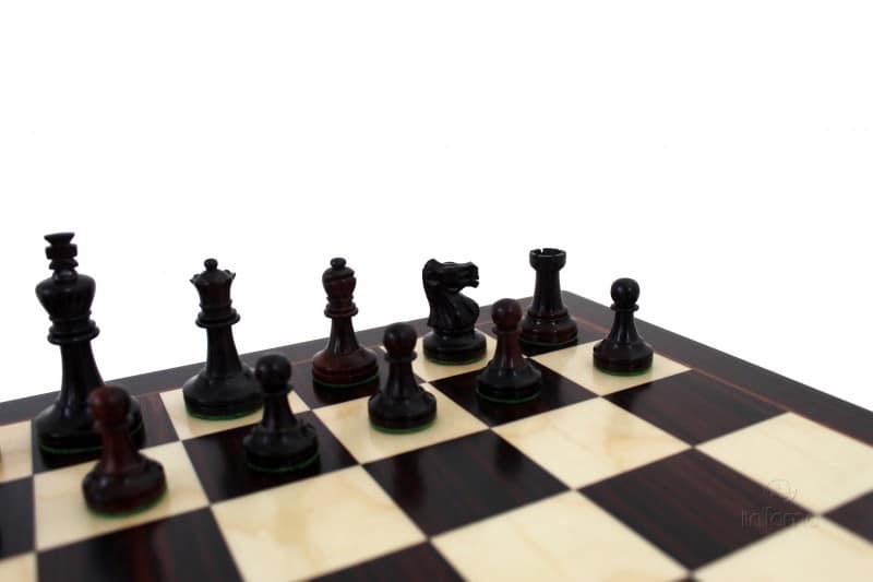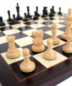 Ensemble Jeu d’Echecs et Echiquier en Bois d’Erable et de Buis – Fleur Noire
