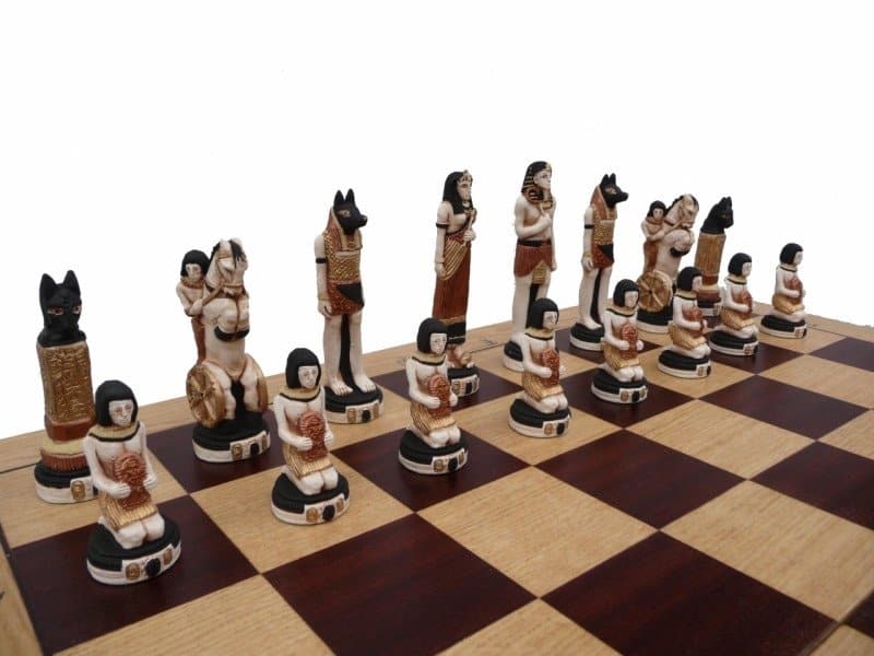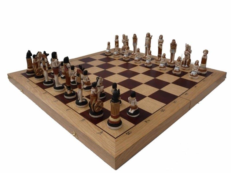 Jeu d’Echecs en Marbre + Echiquier en Bois d’Acajou et d’Erable – Combo Egypte