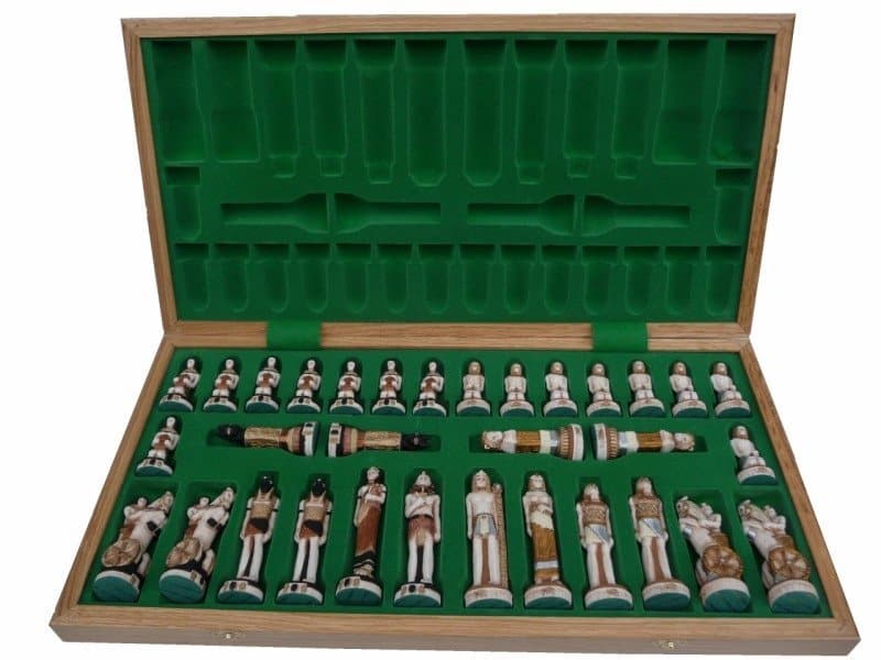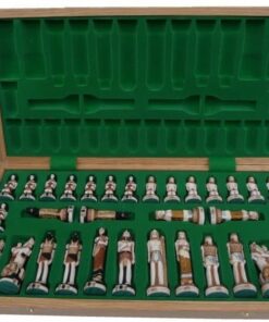 Le Combo Egypte – Jeu d’Echec en Marbre + Echiquier en Bois d’Acajou et d’Erable est l’un des ensembles décoratifs de luxe les plus prisés. Les pièces d’échecs sont faites de poudre de marbre collée avec une résine durable et le plateau pliant est incrusté de bois d’acajou et de sycomore. Il est également doté d’un plateau d’insertion pour le rangement des pièces d’échecs. Les pièces d’échecs de style égyptien sont peintes à la main avec soin et attention, ce qui leur donne un look unique et distingué. Ce Combo est uniquement disponible dans nos couleurs. Offrez à votre salon ou à votre bureau l’élégance et le style qu’il mérite avec ce jeu exceptionnel. Une rareté pour les connaisseurs. Une expérience unique en matière de jeux d’échecs.