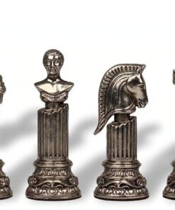 Ce jeu d’échecs en métal colonne romaine est fabriqué en Europe avec un matériau massif. Chaque pièce est soigneusement sculptée et ciselée à la main. Le roi mesure 12 cm de haut et 3,8 cm au diamètre de base. Le jeu comprend 32 pièces. Pour compléter votre jeu d’échecs, vous pouvez choisir un échiquier avec des cases de 4,8 à 6,2 cm. Ce jeu d’échecs en métal colonne romaine est une pièce unique à ajouter à votre collection. Vous allez adorer son esthétique et sa qualité. Laissez-vous transporter dans un jeu d’échecs médiéval avec ce jeu de qualité supérieure.