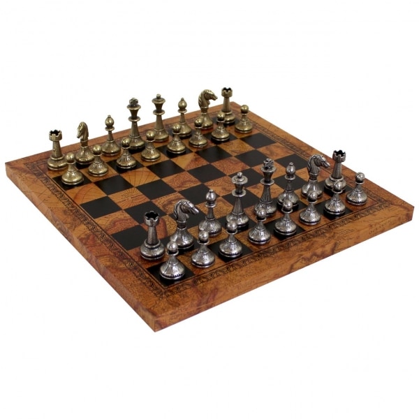 Jeu d’échecs en similicuir et métal – Échiquier orné de fleurs et globe terrestre