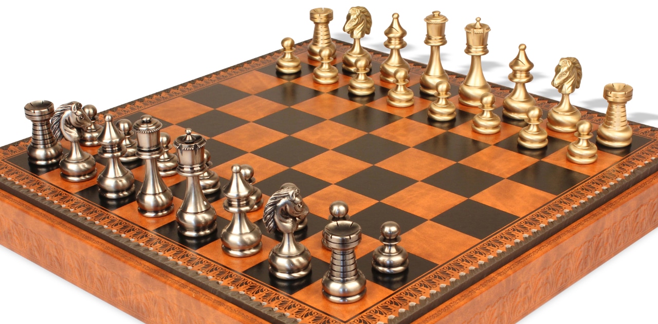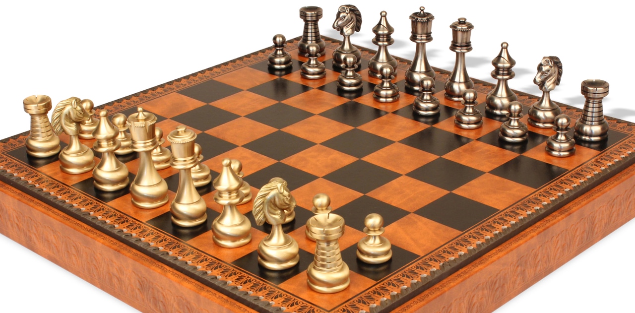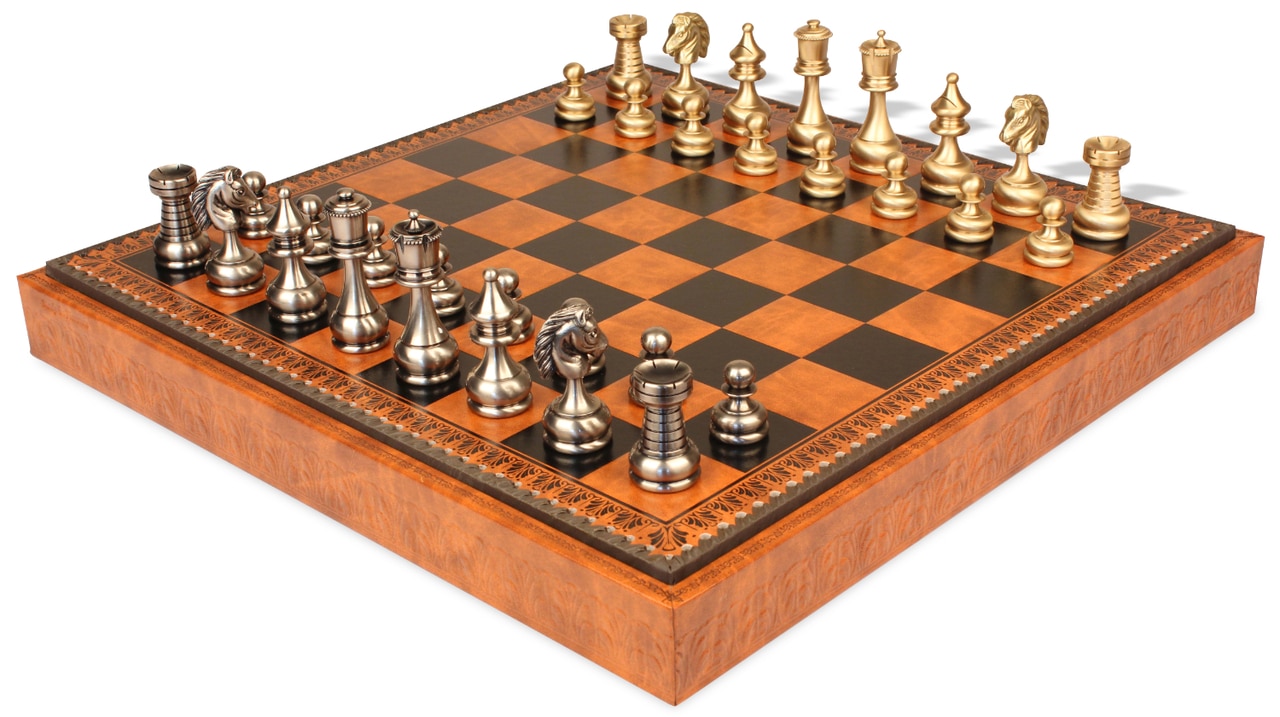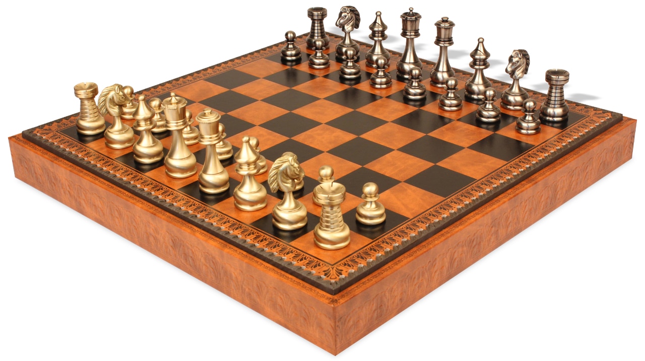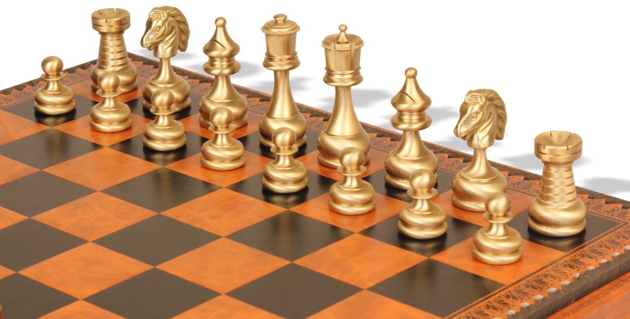 Jeu d’Échecs Grand Ensemble Perse – Échiquier Backgammon & Jeu de Dames en Similicuir et Pièces en Laiton Massif