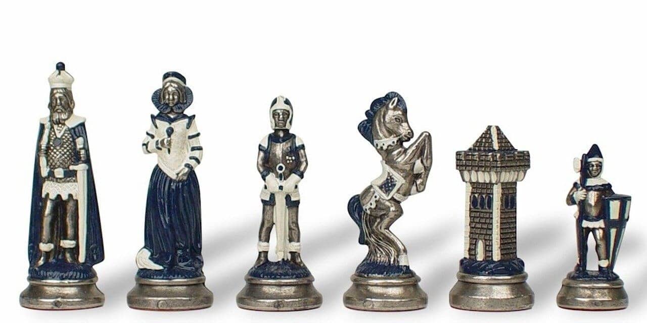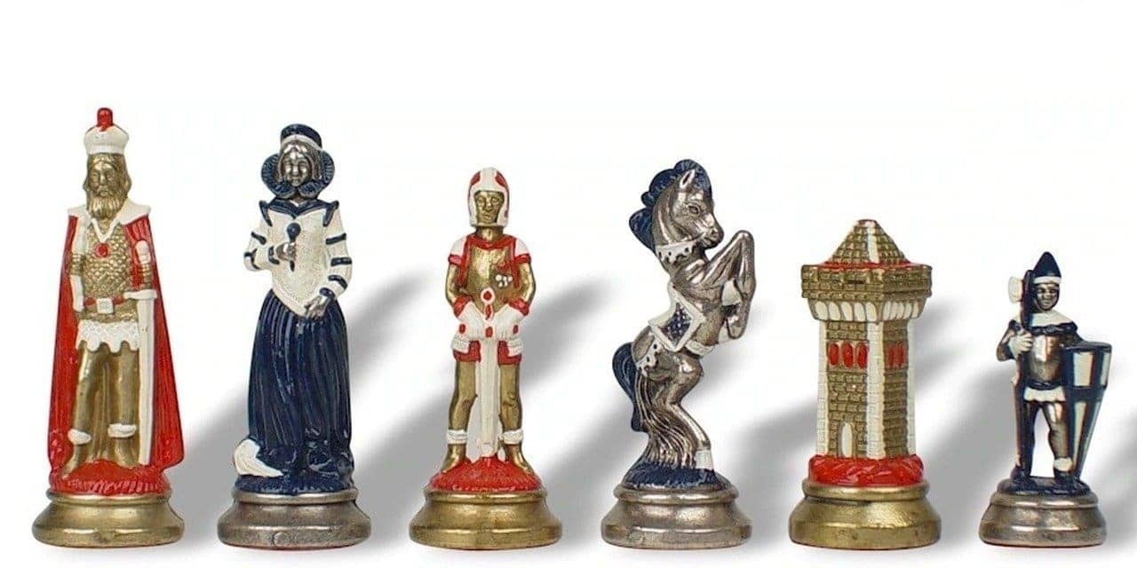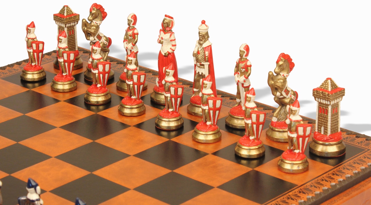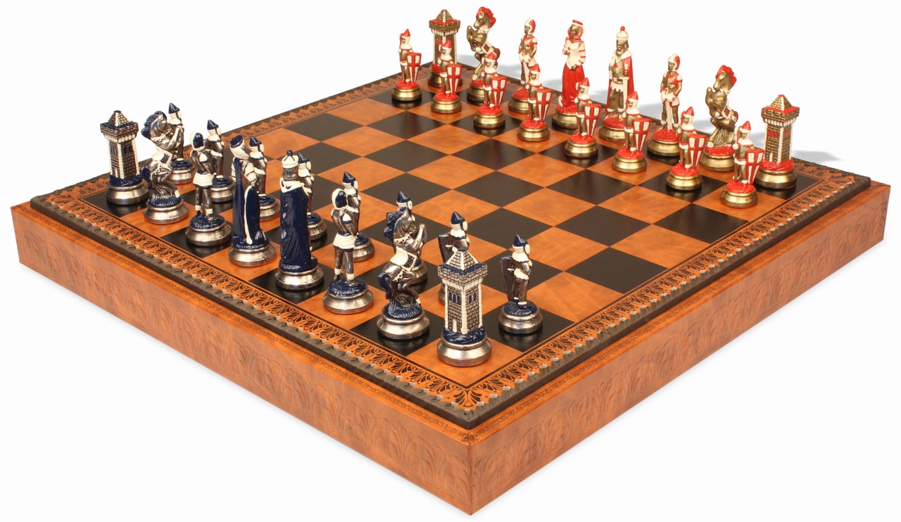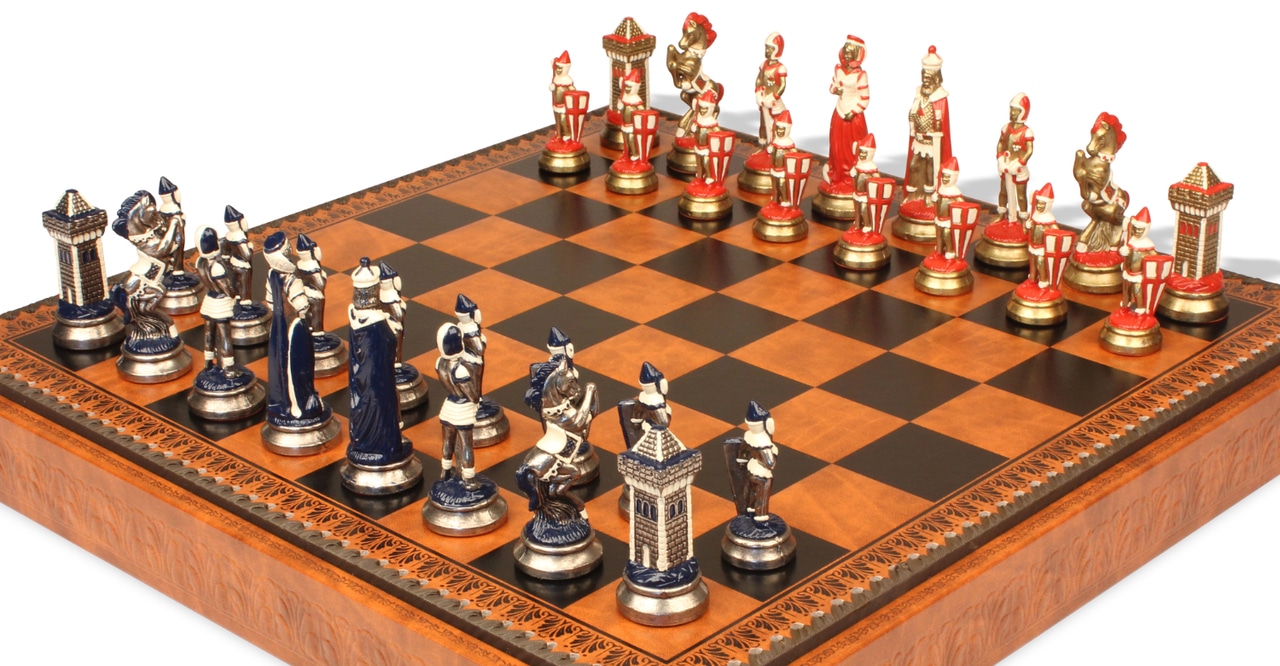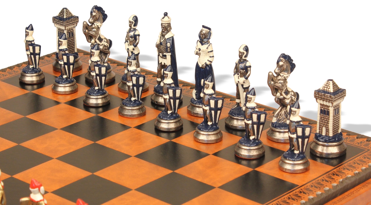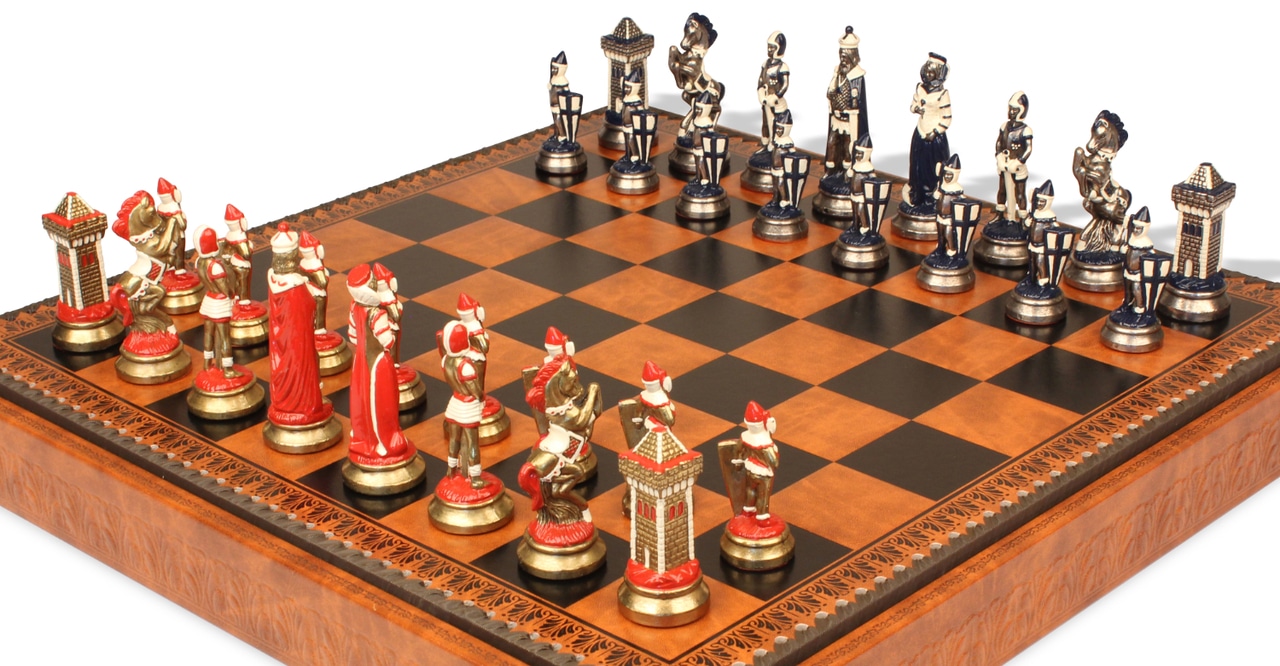 Jeu d’Échecs Mary Stuart – Échiquier, Backgammon et Jeu de Dames en Similicuir avec Pièces en Métal