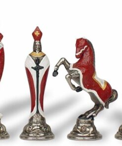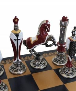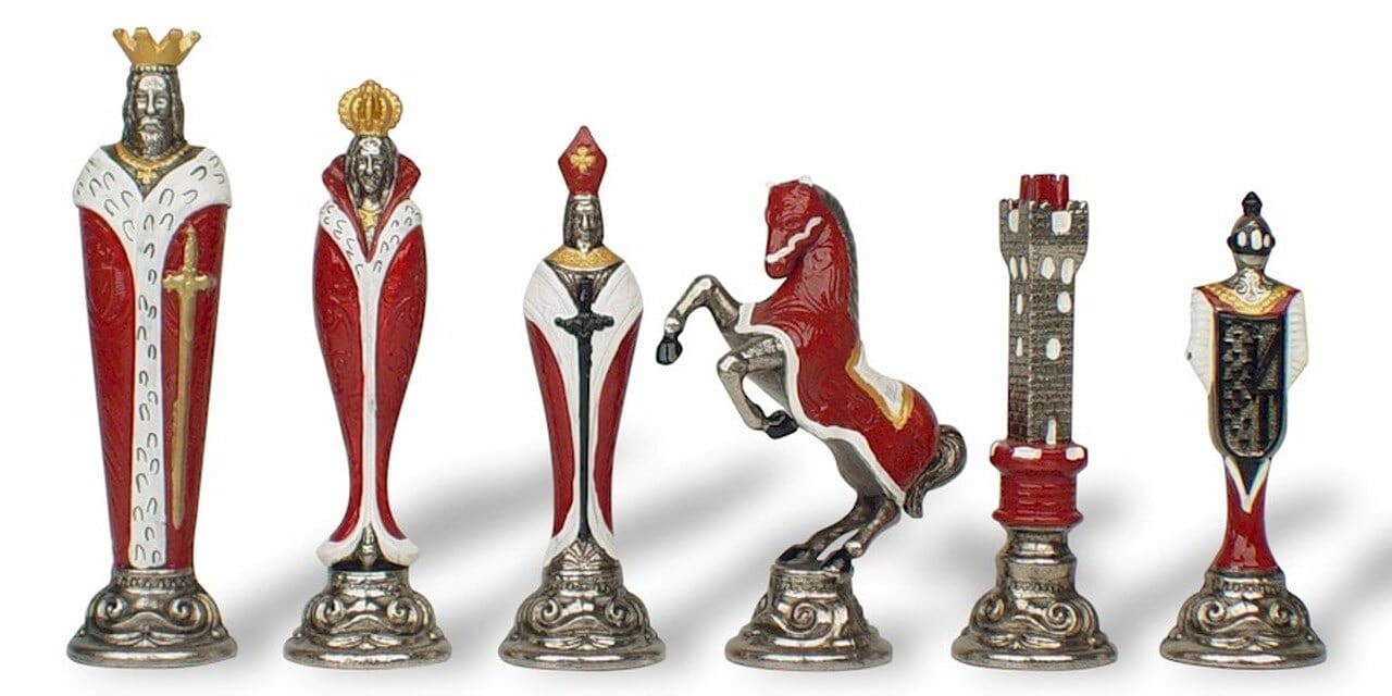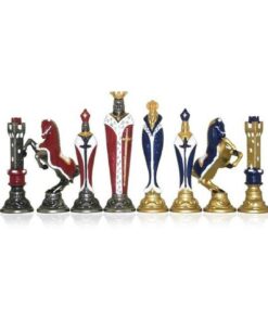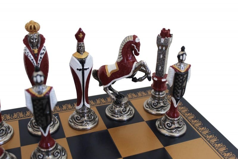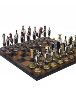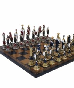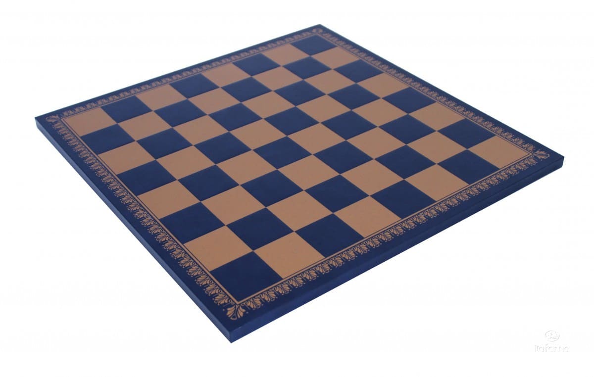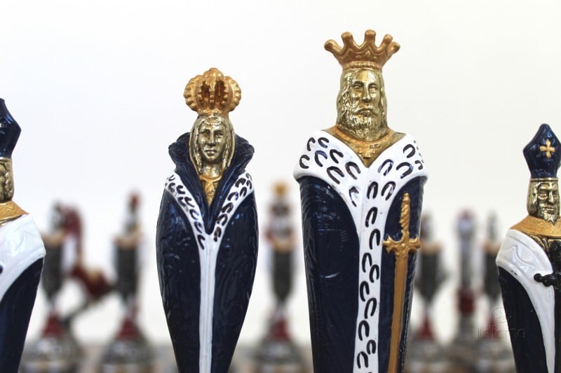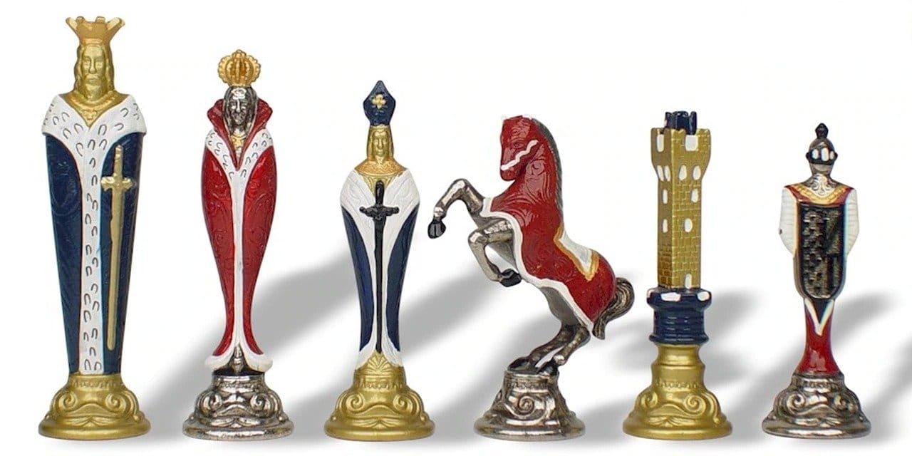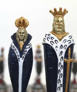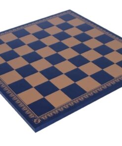 Jeu d’Echecs Renaissance en Métal Peint à la Main, Échiquier en Similicuir Doré/Bleu – Idéal pour Les Amateurs et Les Professionnels