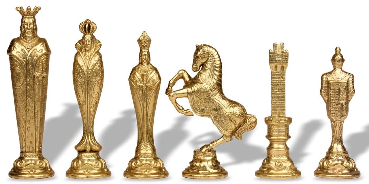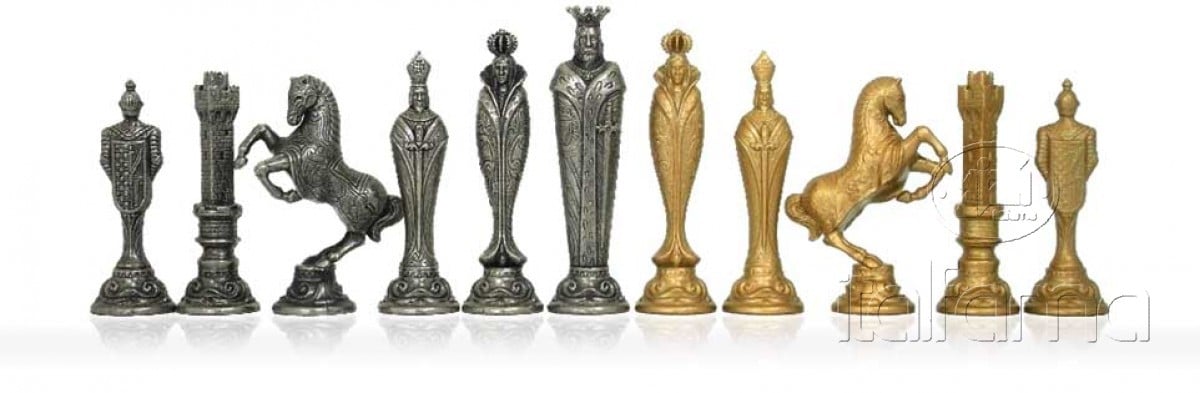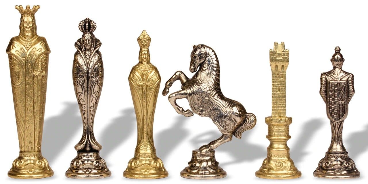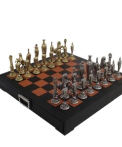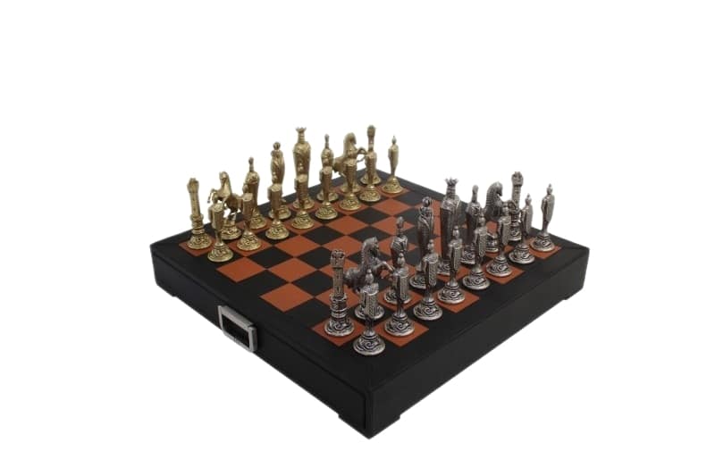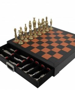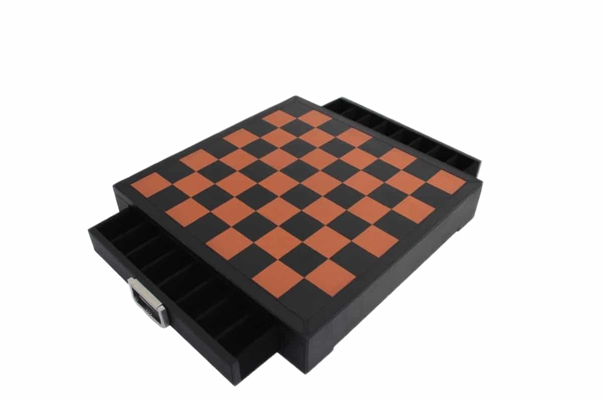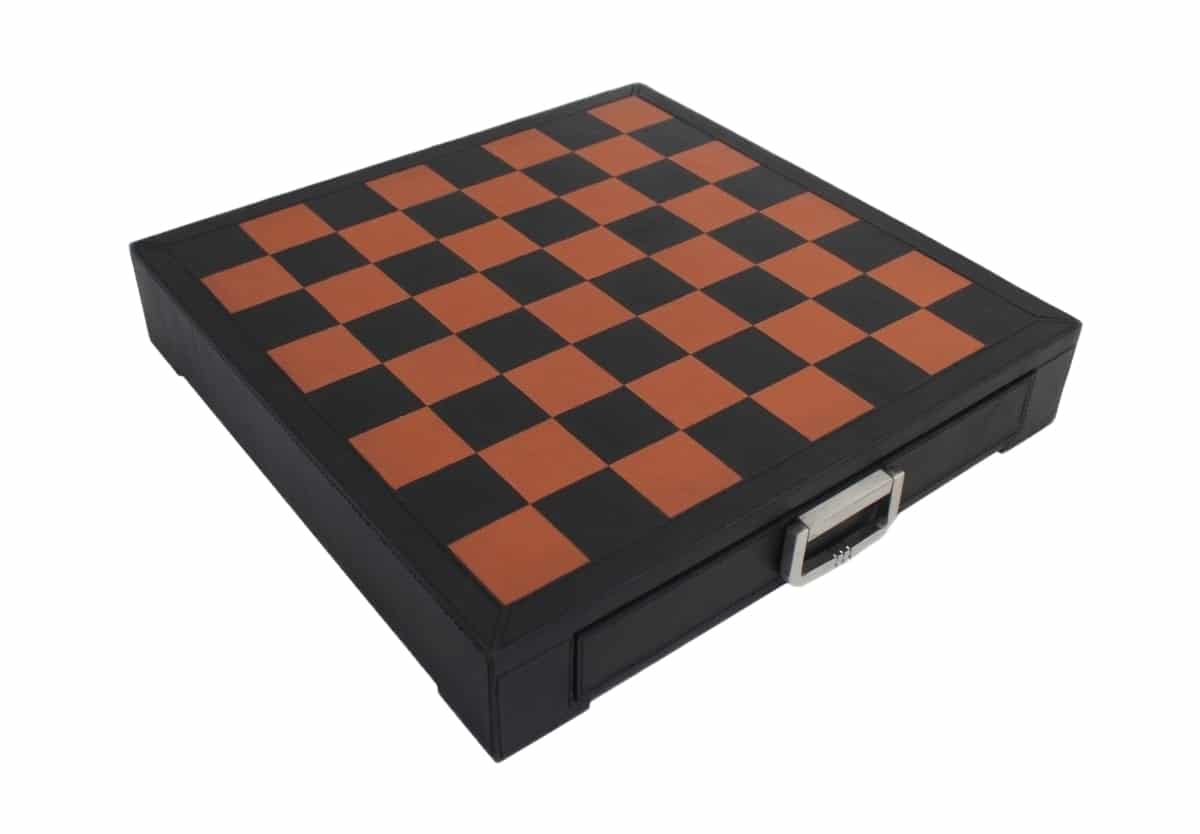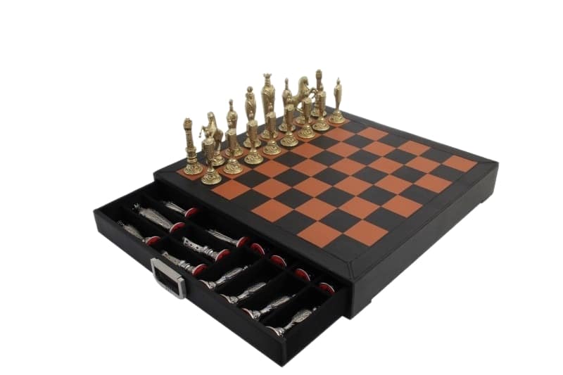 Jeu d’Echecs Renaissance Florentin en Métal et Cuir Véritable avec Tiroir de Rangement – Meilleure Qualité et Prix