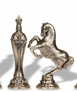 Ce jeu d’échecs Renaissance Florentin en métal et échiquier en cuir véritable avec tiroir de rangement est un jeu de plateau très intéressant. Les pièces sont faites à la main avec des métaux de haute qualité et sont très détaillées pour un look et une sensation authentiques. Les pièces sont livrées avec un plateau en cuir véritable qui possède un tiroir de rangement pour les pièces. Cet échiquier est le jeu parfait pour les amateurs d’échecs qui cherchent à compléter leur collection.Le plateau en cuir est conçu pour offrir une surface de jeu stable et lisse, tandis que les pièces en métal offrent une durabilité et une apparence élégante. Les pièces sont conçues pour ressembler à des oeuvres d’art, et ont une texture en relief qui les rendent faciles à manip