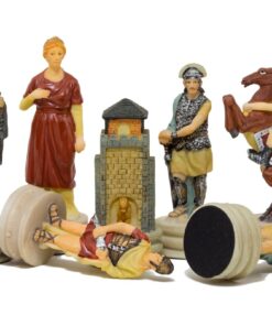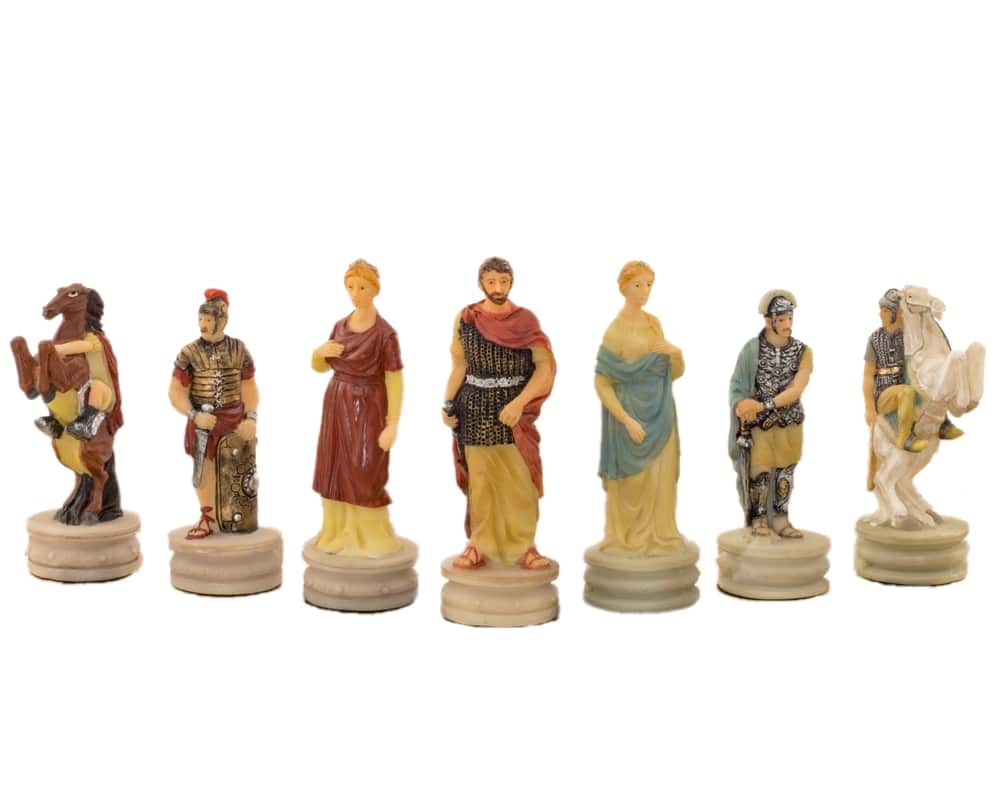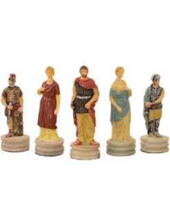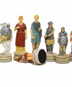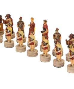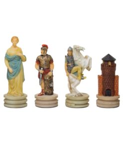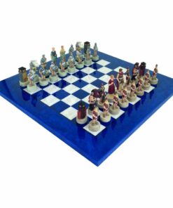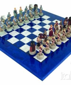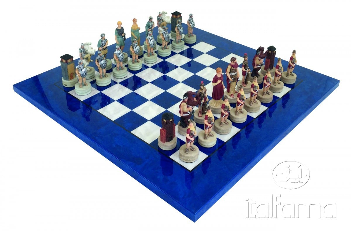 Jeu d’Échecs Romains VS Grecs en Résine et Échiquier en Bois de Bruyère Bleu et Blanc – Meilleur Jeu d’Échecs de Collection