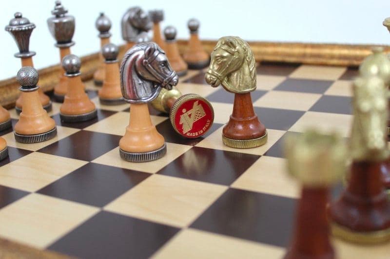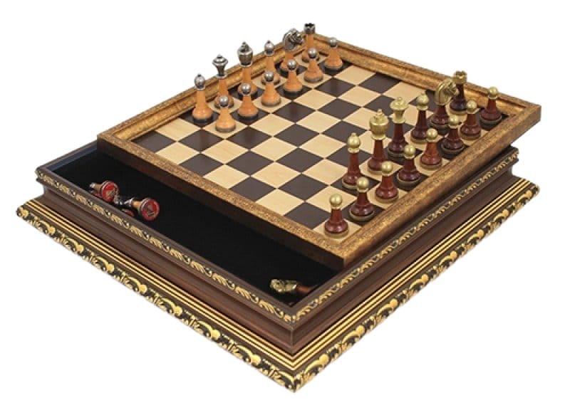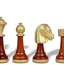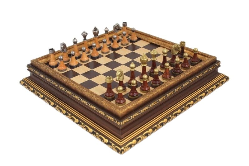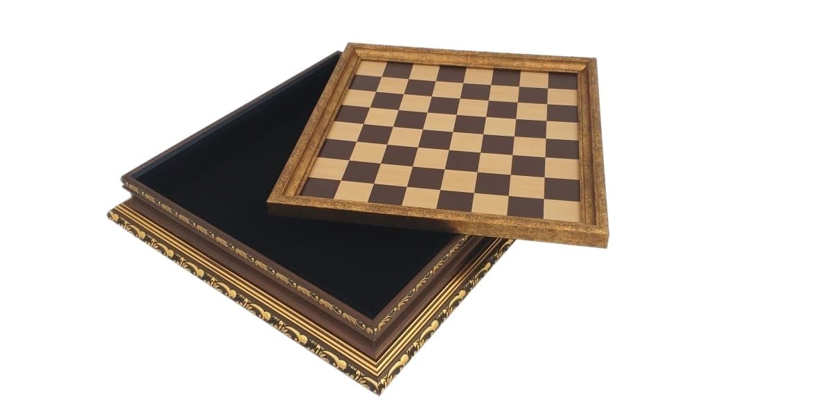 Jeu d’Echecs Staunton | Bois & Métal | Echiquier avec Rangement en Bois & Feuilles d’Or