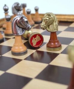 Ensemble Jeu d’Echecs Haut de Gamme en Bois d’Orme et d’Erable avec Pièces Plaquées Or et Argent