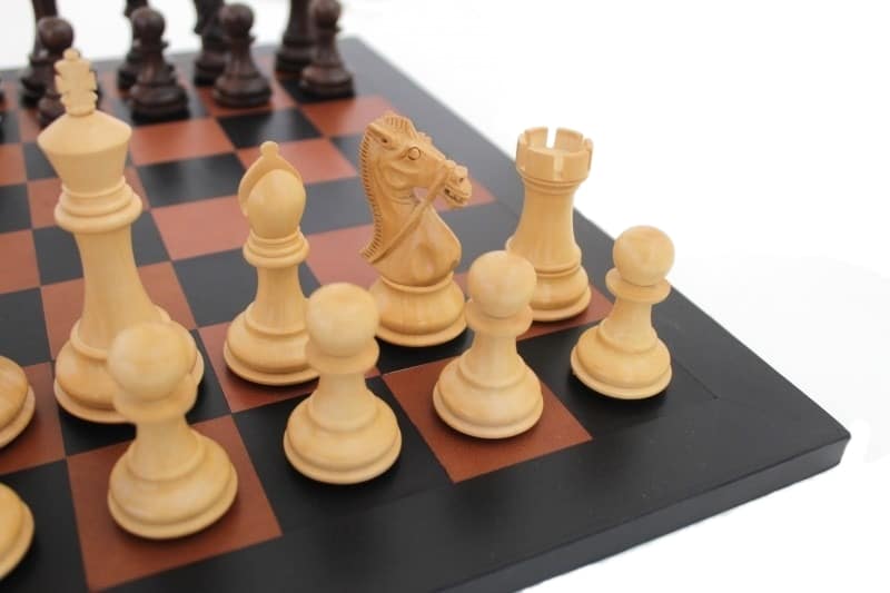 Jeu d’Echecs Staunton en Bois de Palissandre et Échiquier en Cuir Véritable – Idéal pour Les Joueurs Professionnels et Amateurs