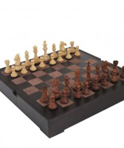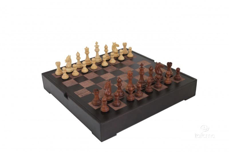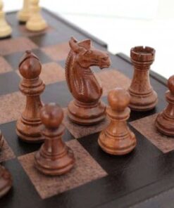 Jeu d’Echecs Staunton en Bois de Rose & Échiquier en Cuir Véritable – Un Cadeau Idéal pour les Amateurs d’Echecs